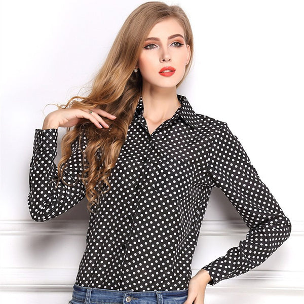 Gender: WomenDecoration: NoneClothing Length: RegularPattern Type: Polka DotSleeve Style: RegularStyle: FashionFabric Type: ChiffonMaterial: PolyesterCollar: Turn-down CollarColor Style: GradientSleeve Length: FullProduct Number: LY0913