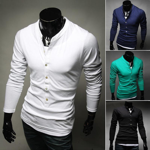 2015 Hot Sale Men's Fashion T-Shirt Single-Breasted Cotton T-Shirt Free Shipping Long Sleeve Slim T-Shirt 4 Color
