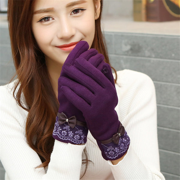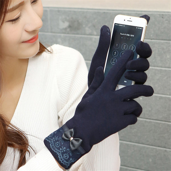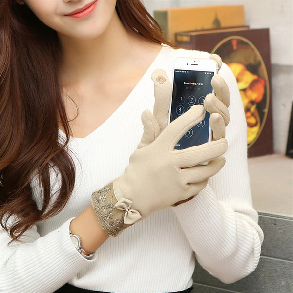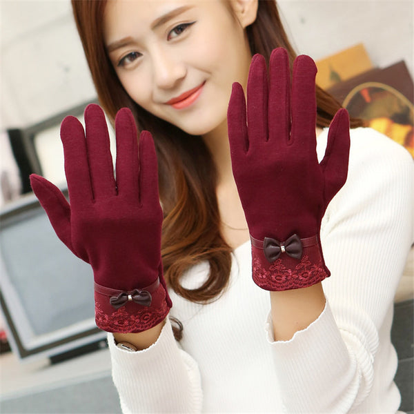 Winter Warm Solid Color Fashion Lace Touch Screen Gloves for Christmas Gift New Arrival Bow-knot Design Women Gloves
